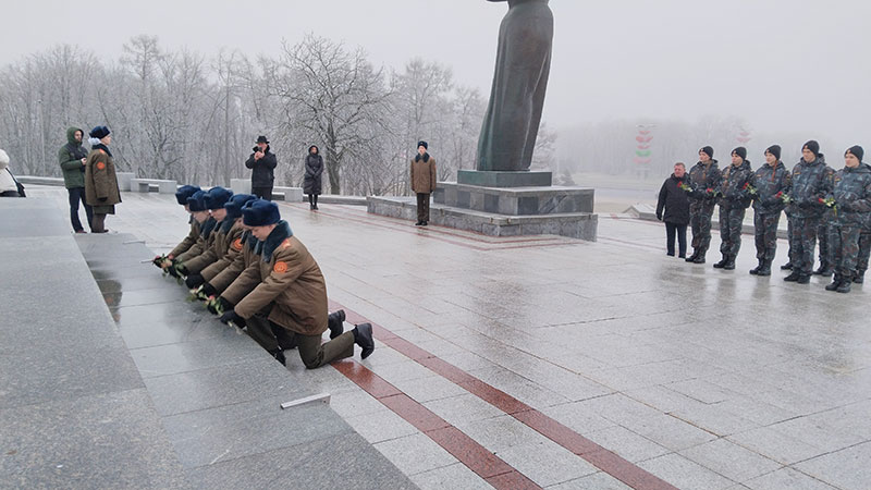 постовцы города-героя Минска заступили в почетный караул у стелы «Минск – город-герой» и возложили цветы вместе с участниками мероприятия и почтили память погибших в годы Великой Отечественной войны минутой молчания.